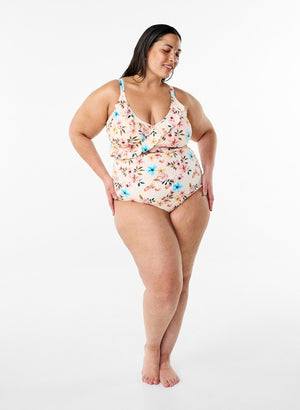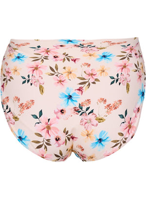 Þessar eru peach bleikar með sumarlegu blómamynstri - Bikiní toppur í stíl við buxurnar fæst líka hjá okkur í Curvy.