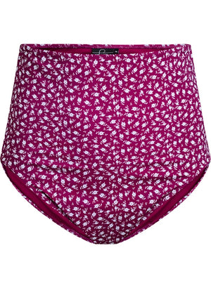 Þessar eru fallega plómu rauðar með smáum blómum - Bikiní toppur í stíl við buxurnar fæst líka hjá okkur í Curvy.