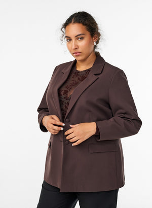 Fallegur súkkulaðibrúnn blazer jakki frá Zizzi sem passar við allt.