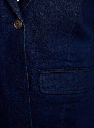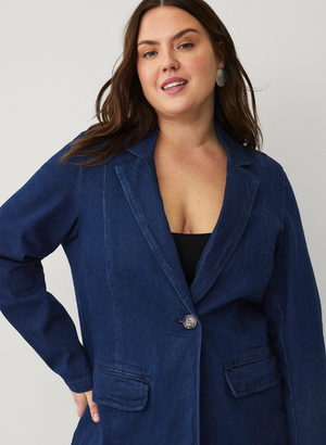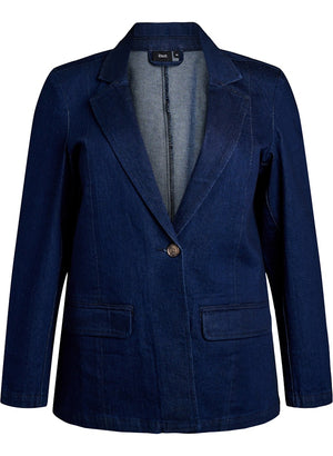 Geggjaður dökkblár gallajakki með blazer sniði frá danska merkinu Zizzi
