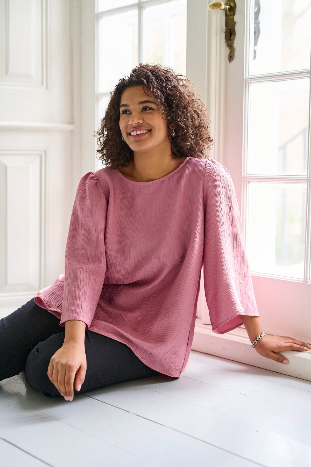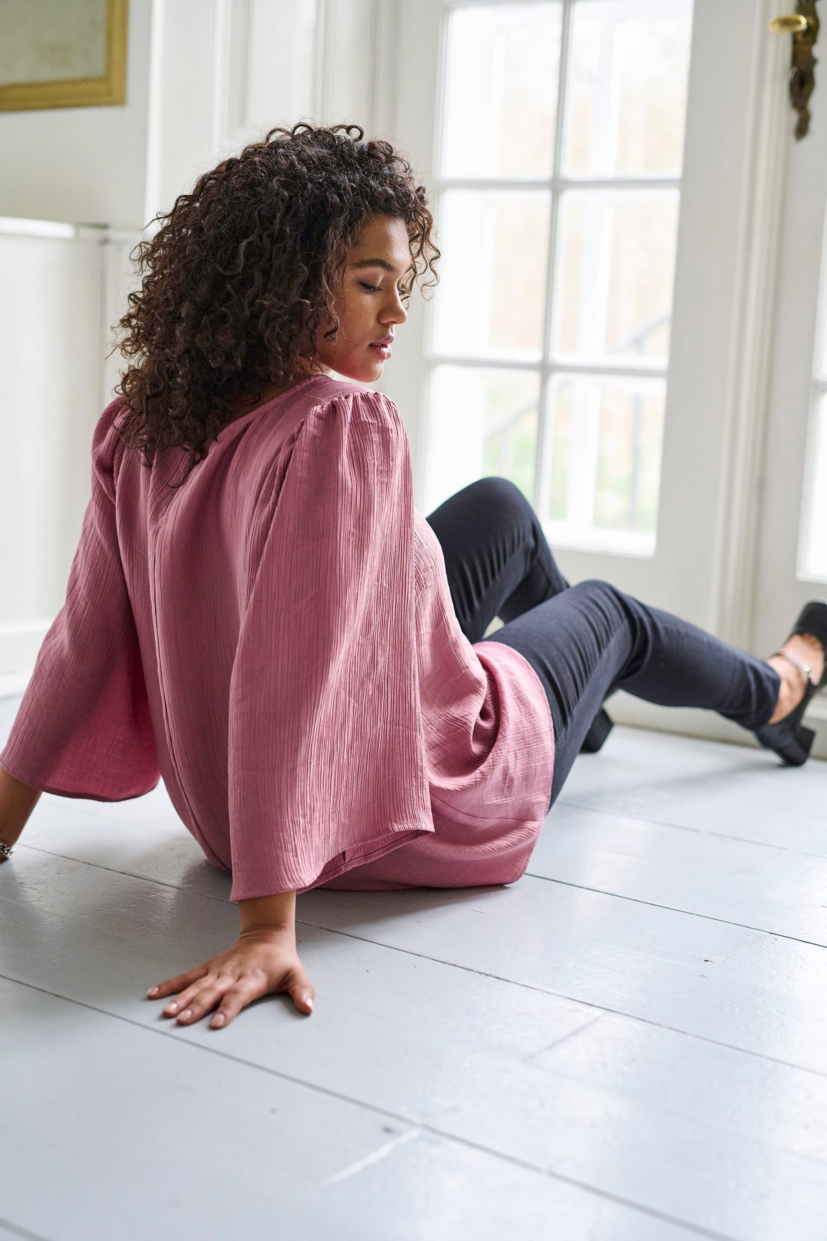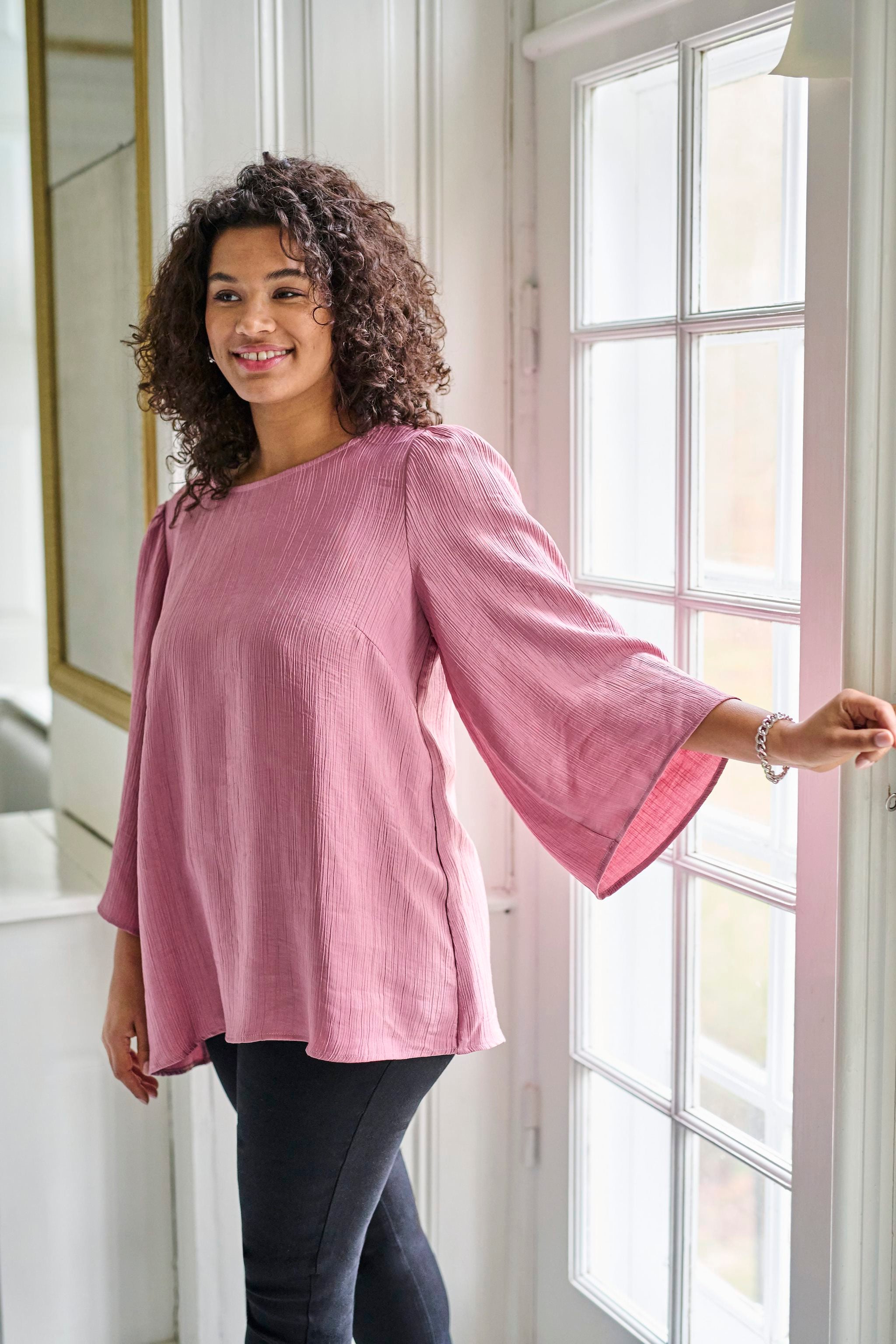 Efnið í blússunni er fínlegt með skemmtilegri áferð.