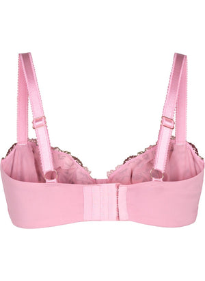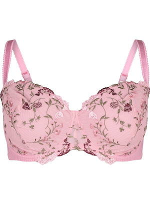Fallegur rósableikur mesh balconette brjóstahaldari með fallegum blóma útsaum.