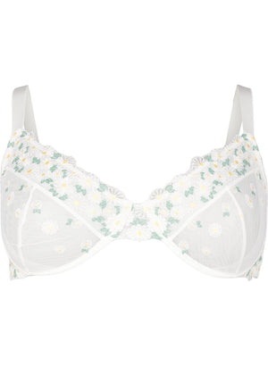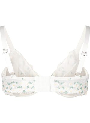 Hvitur mesh með blúndu með fallegum hvítum blóma útsaum.