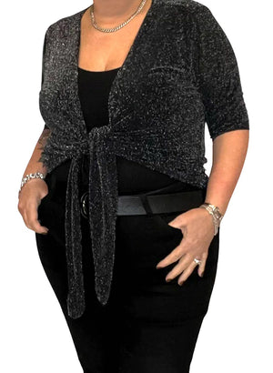 Létt og og stutt bolero golla úr teyganlegu efnið með glitrandi lúrex þráðum.