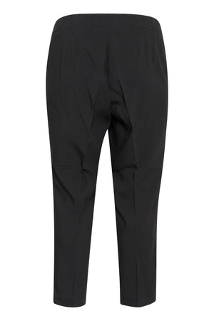 Celia buxurnar frá KAFFE CURVE eru klassískar svartar sparibuxur með aðeins styttri skálmar svo þær eru frábærar fyrir þær sem eru lágvaxnar.