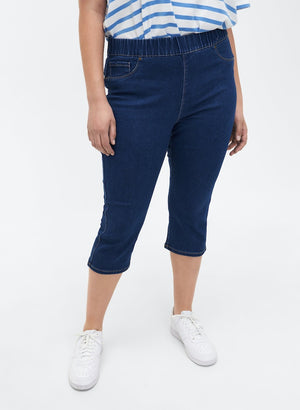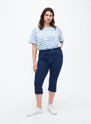Þægilegar og góðar teygju kvart-gallabuxur eða jeggings frá danska merkinu Zizzi.
