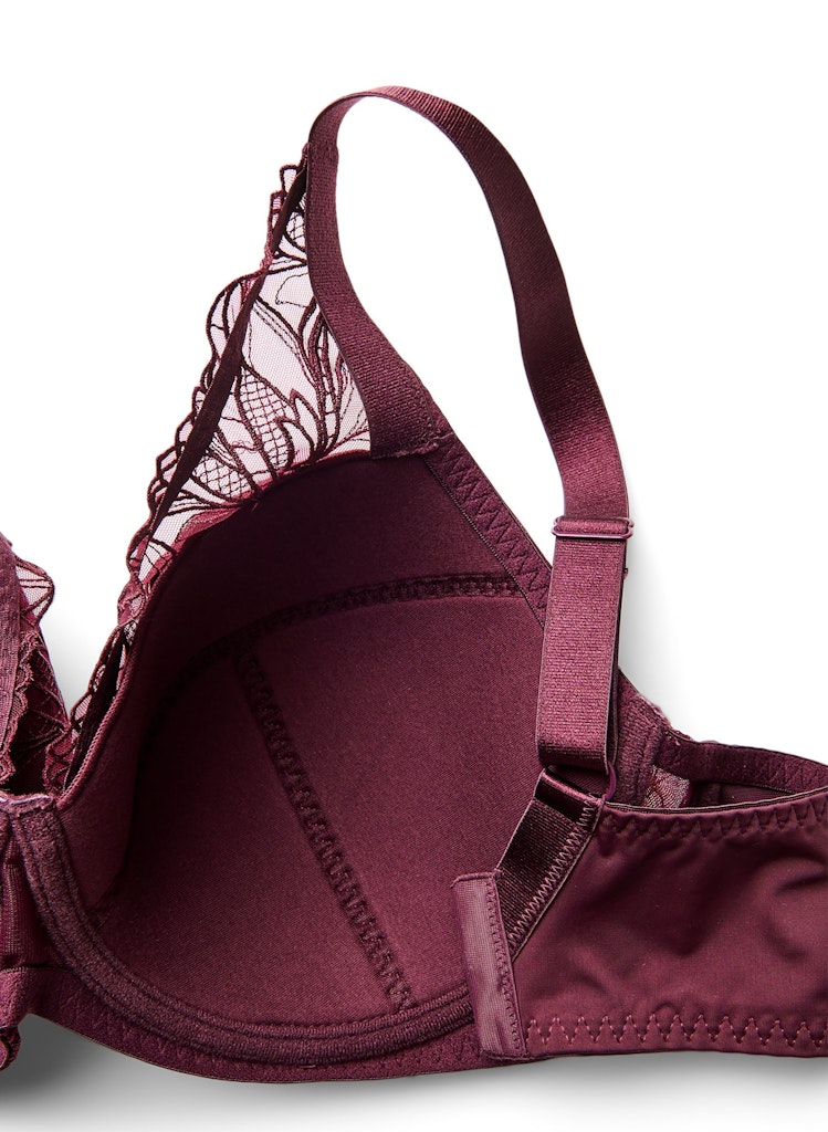 Fallega vínrauður sexy brjóstahaldari frá Devoted, undirfatalínu Zizzi.