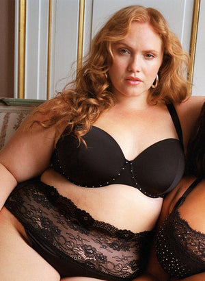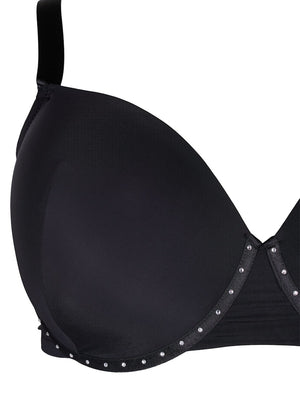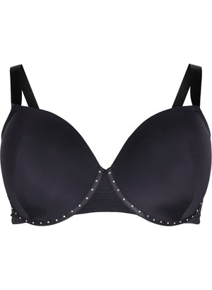 Góður svartur mótaður brjóstahaldari með silfruðum skrautsteinum á spönginni frá undirfatalínu Zizzi - Devoted.