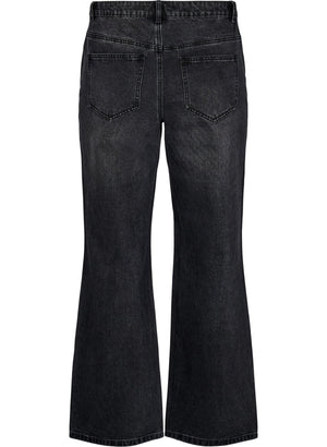 Háar uppí mittið með víðum skálmum og lausu sniði ásamt því að vera háar uppí mittið.