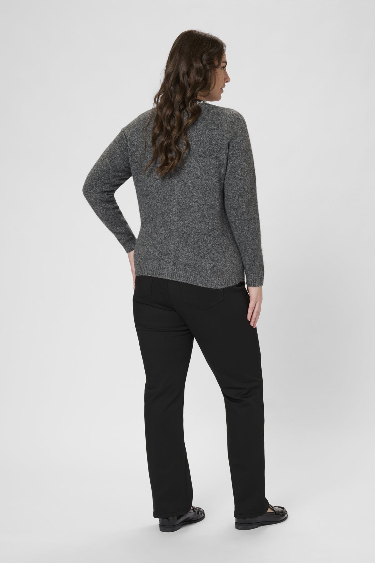 Efnið er góð blanda úr 53% Polyester (Recycled), 39% Polyacrylic, 5% Wool (certified), 3% Elastane