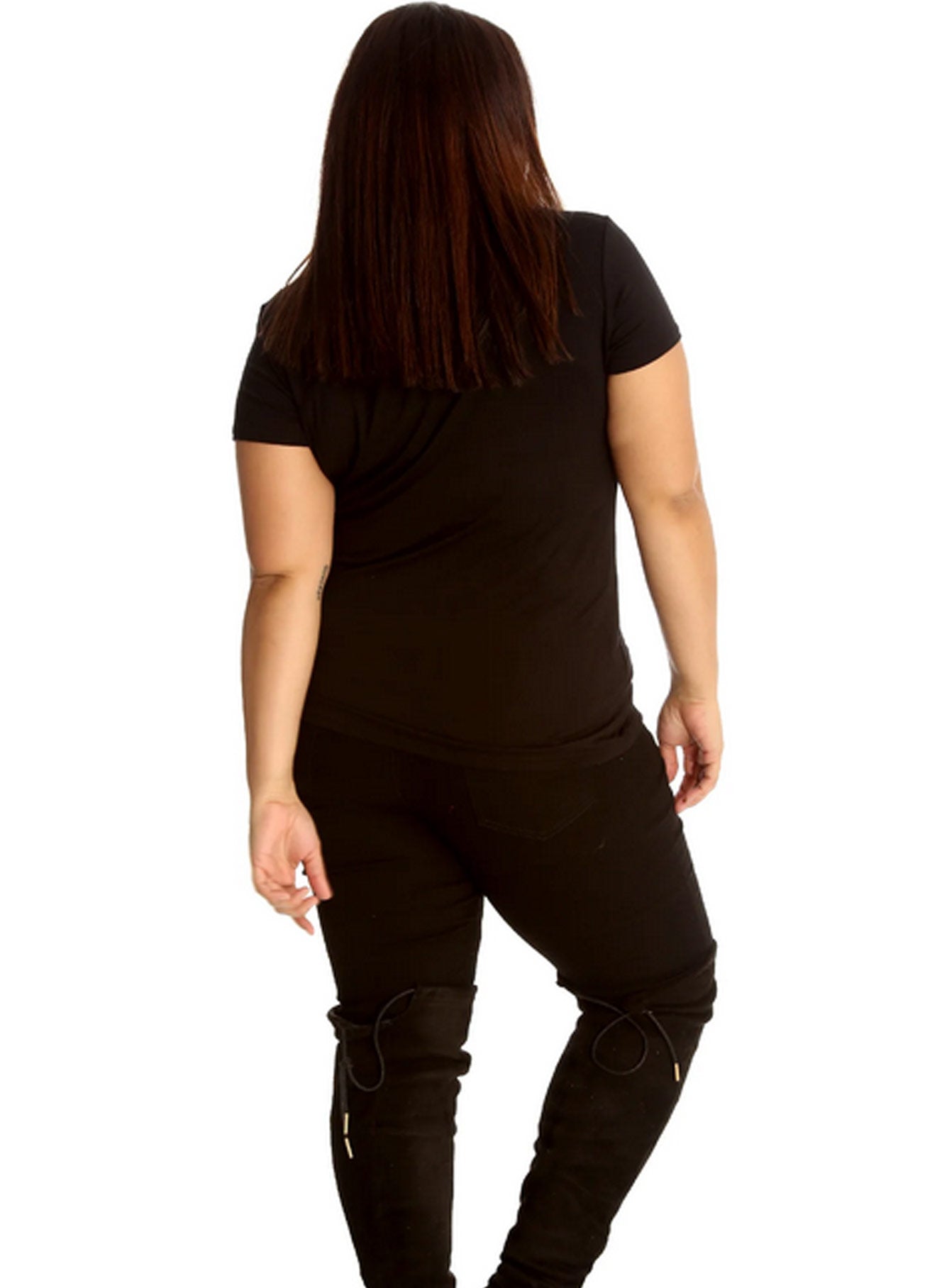 Klassískt rúnnað hálsmál og stuttar ermar.
