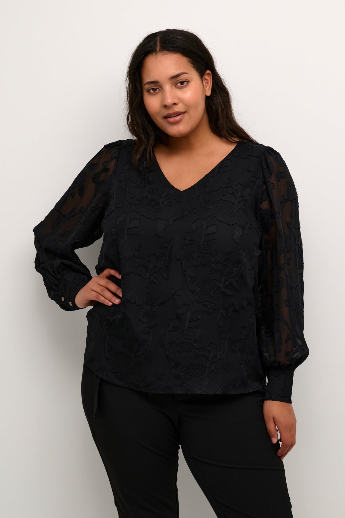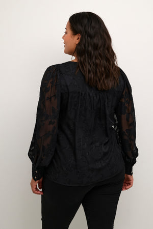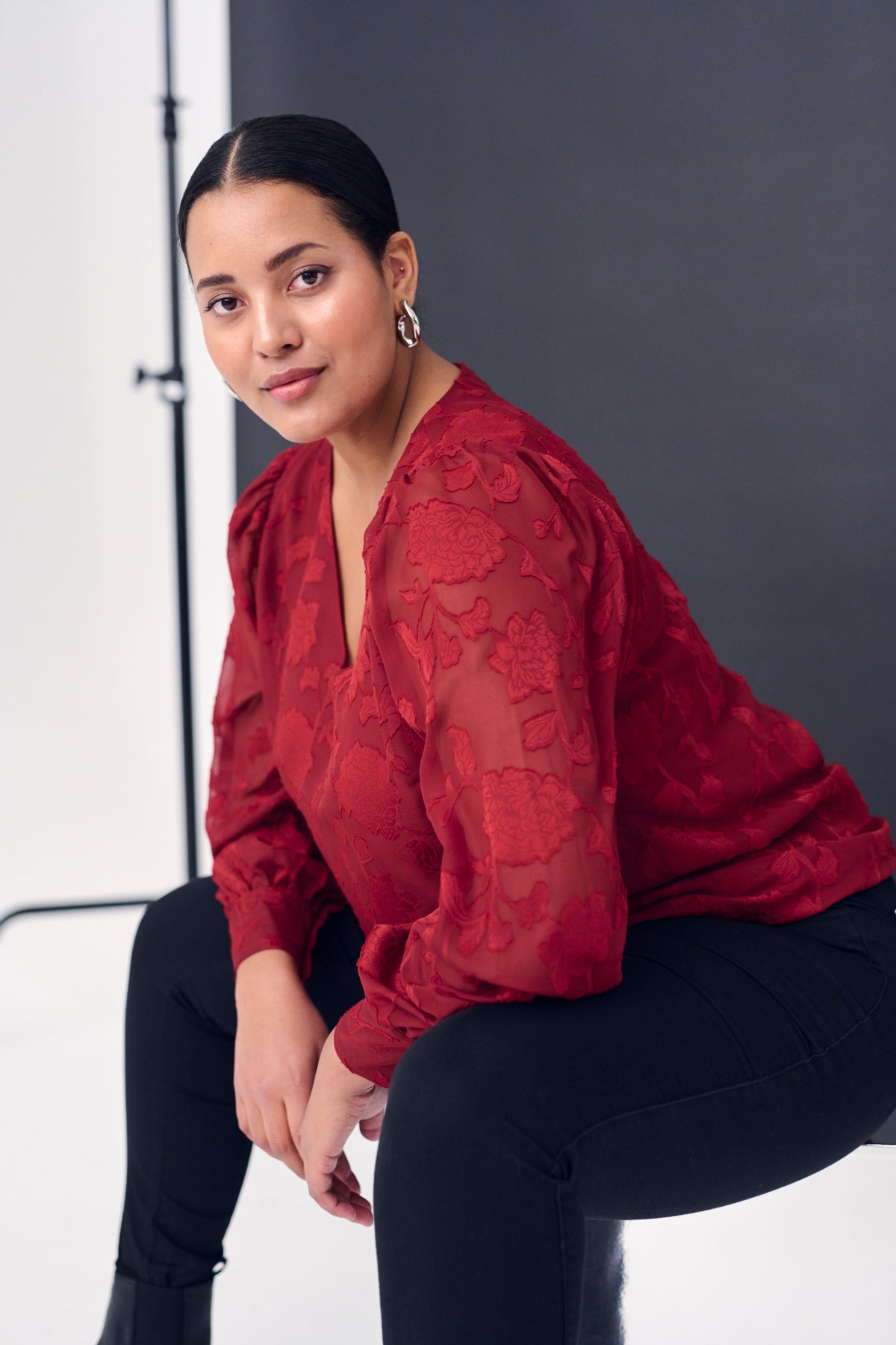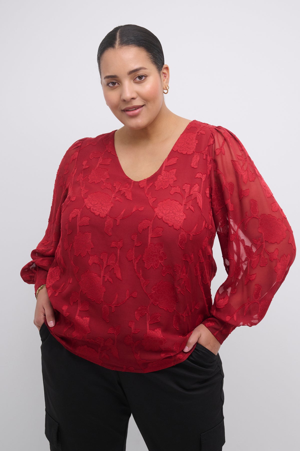 Efnið er fínlegt siffonefni með blómamynstri í með skemmtilegri áferð.
