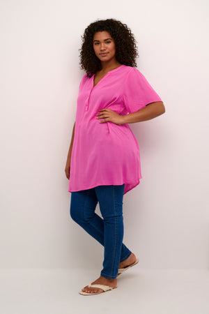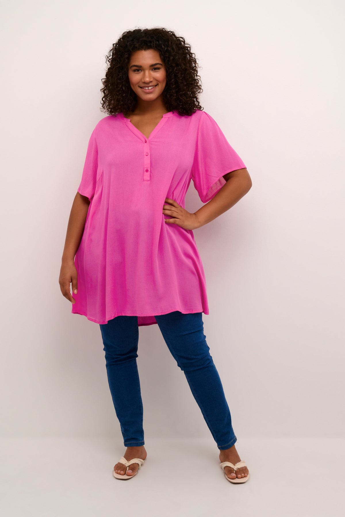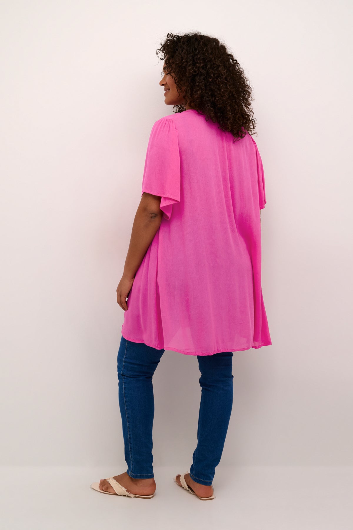 Túnikan er í víðu A-sniði og er með stuttum lausum ermum.