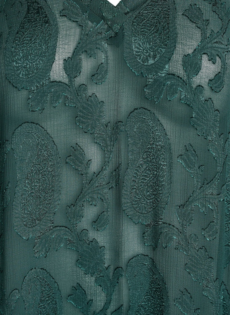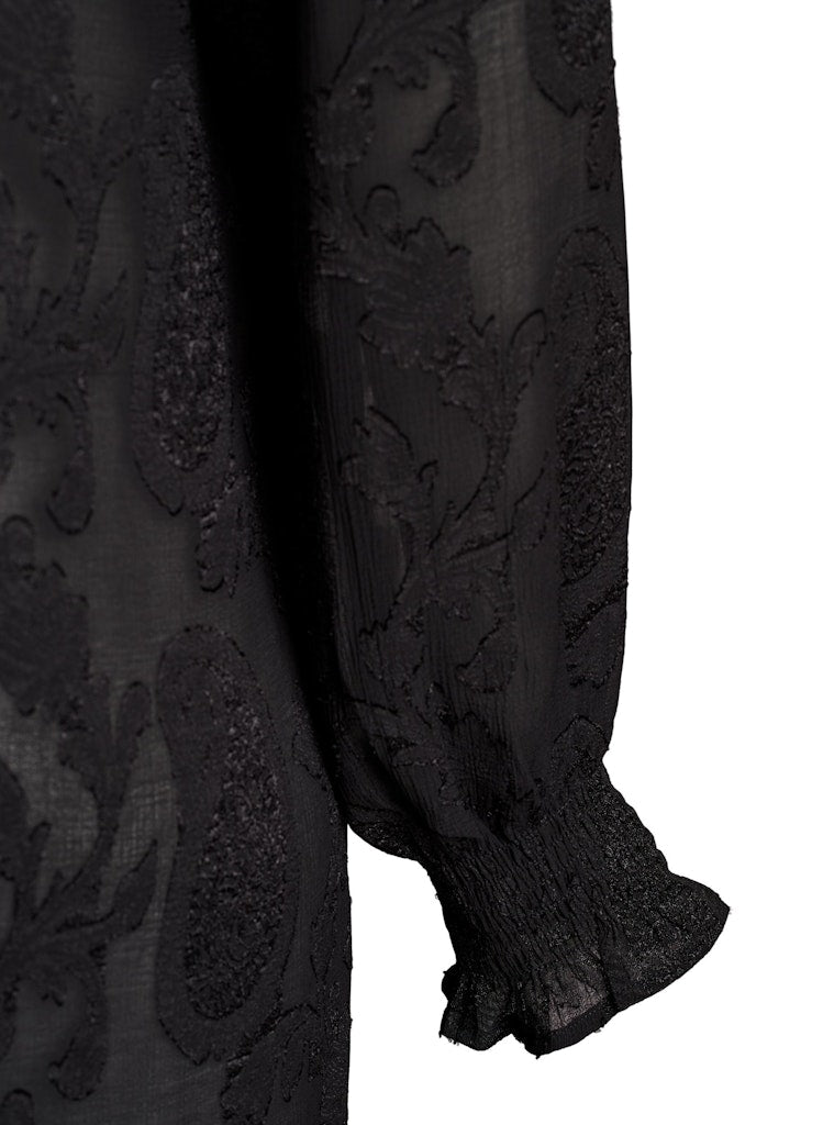 Efnið er úr 100% polyester - fínlegt og hálfgegnsætt siffon efni svo það er gott að vera í topp eða hlýrabol innanundir.