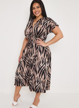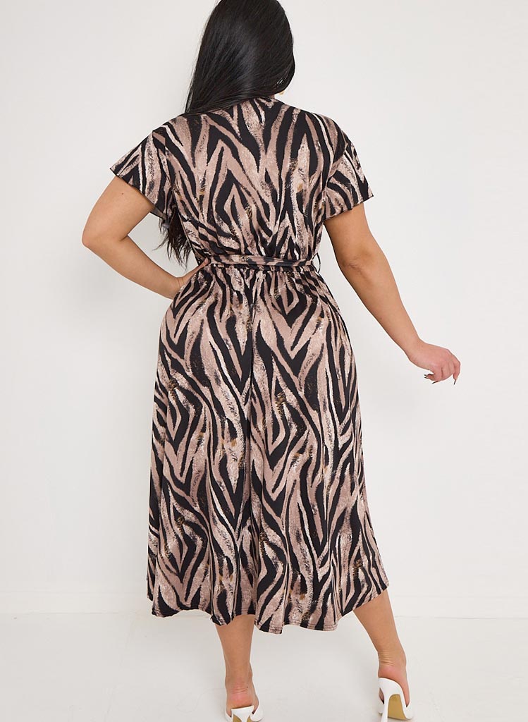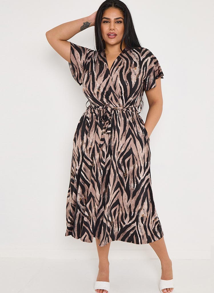 Wrap hálsmál, teygja í mittinu og mjög góð teygja í efninu.
