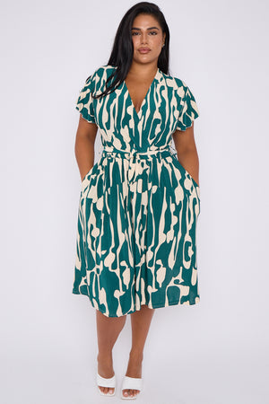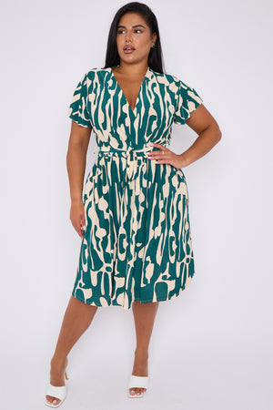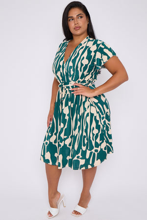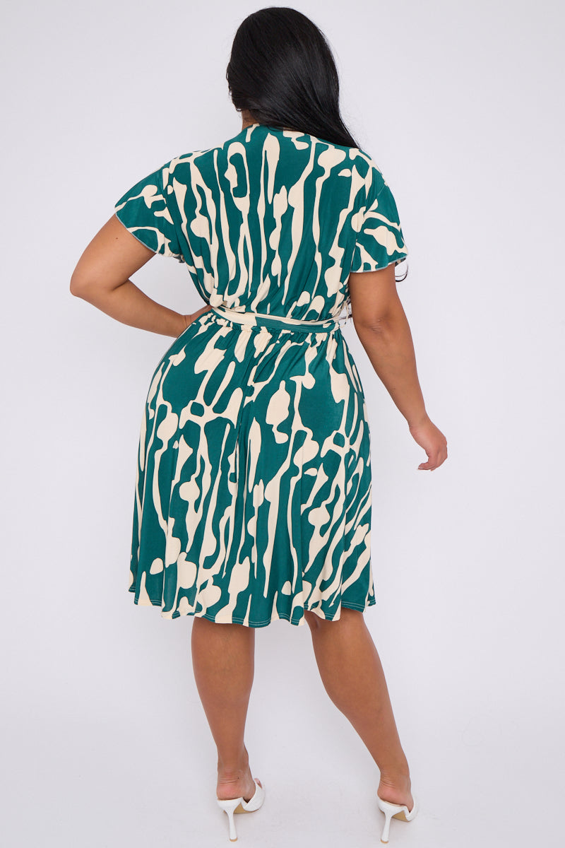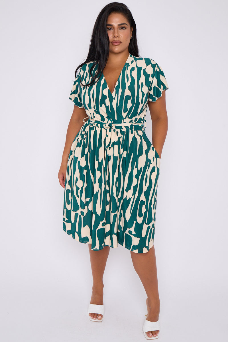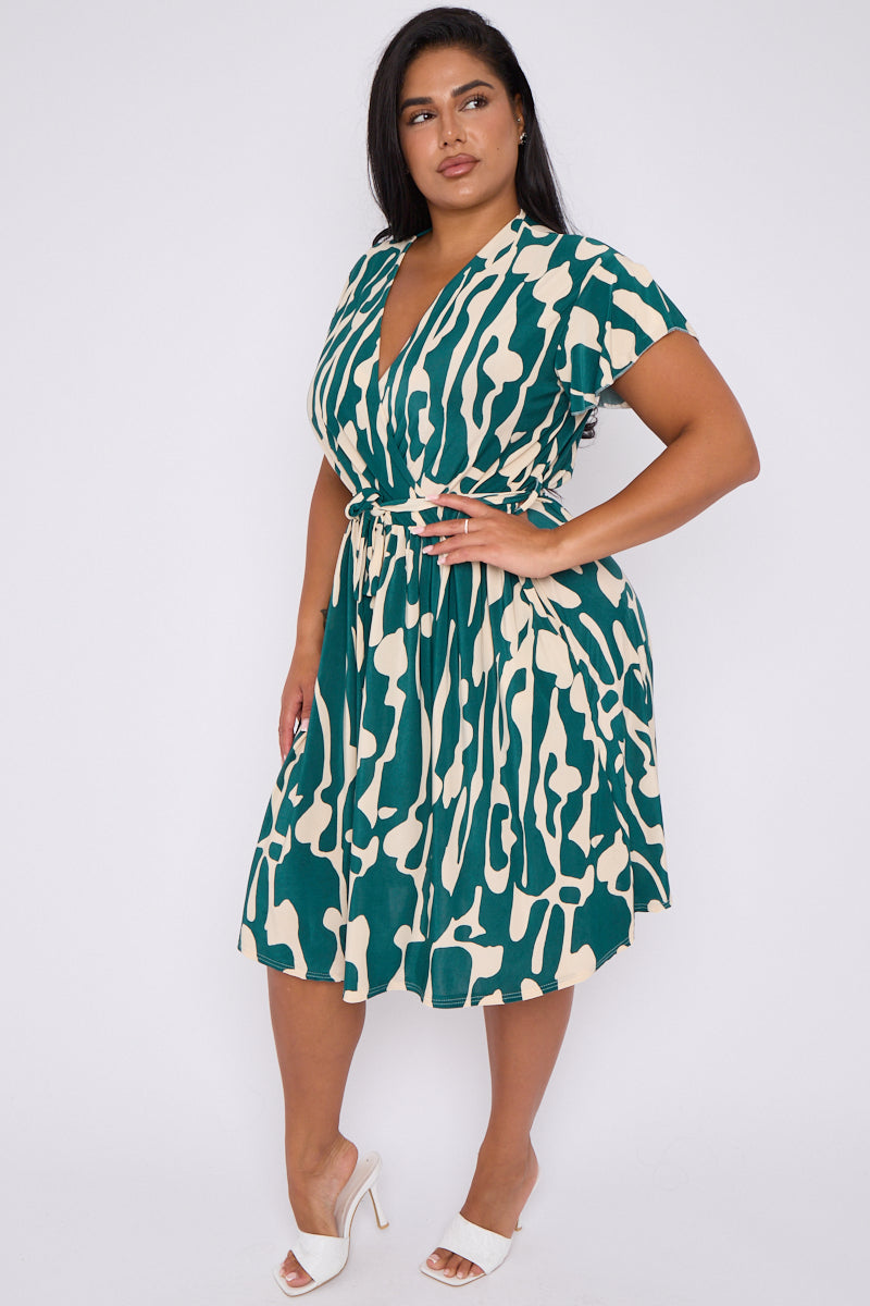 Wrap hálsmál, teygja í mittinu og mjög góð teygja í efninu.