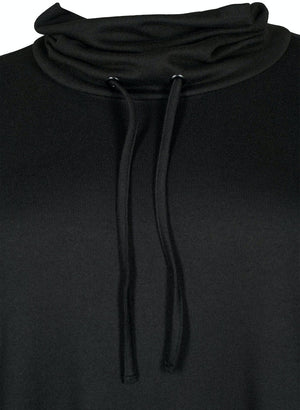 Laust rúllukraga hálsmál með reimum, vasar að framan og laust A-snið.