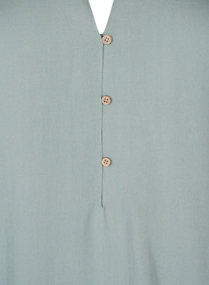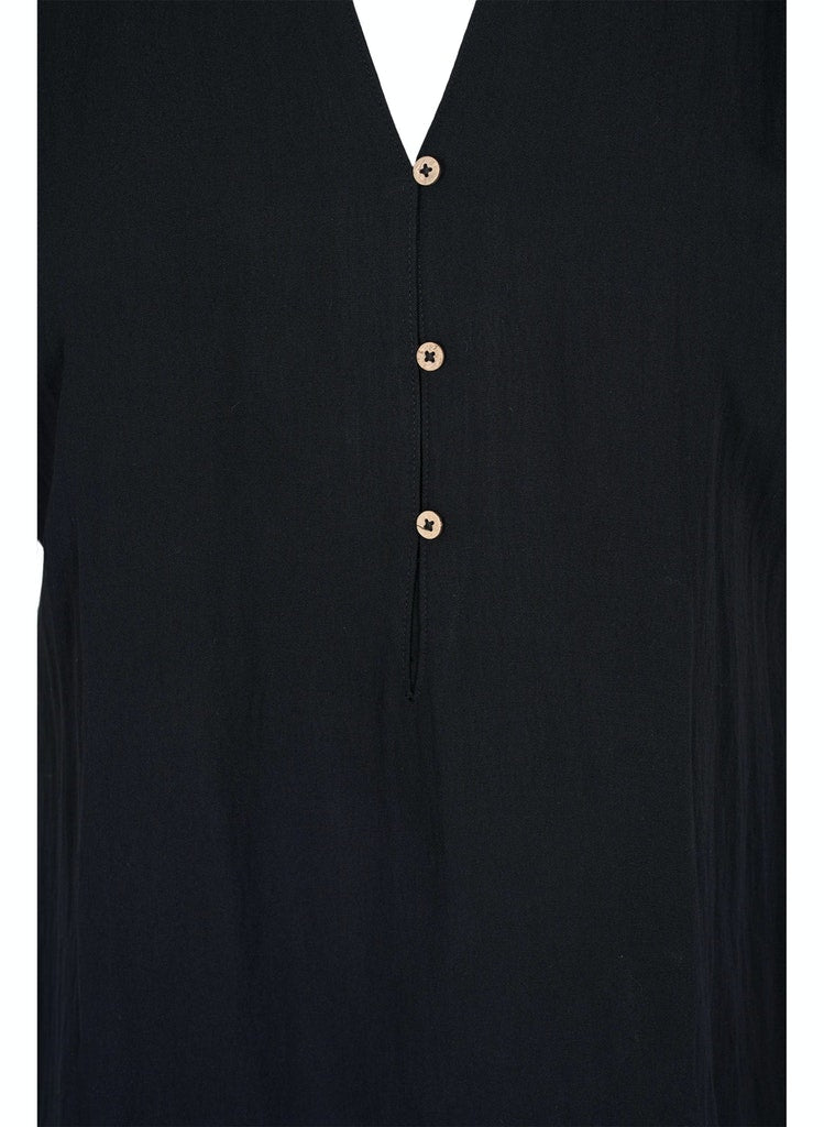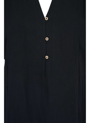 V-hálsmál með nokkrum tölum og lausar hálfar ermar.
