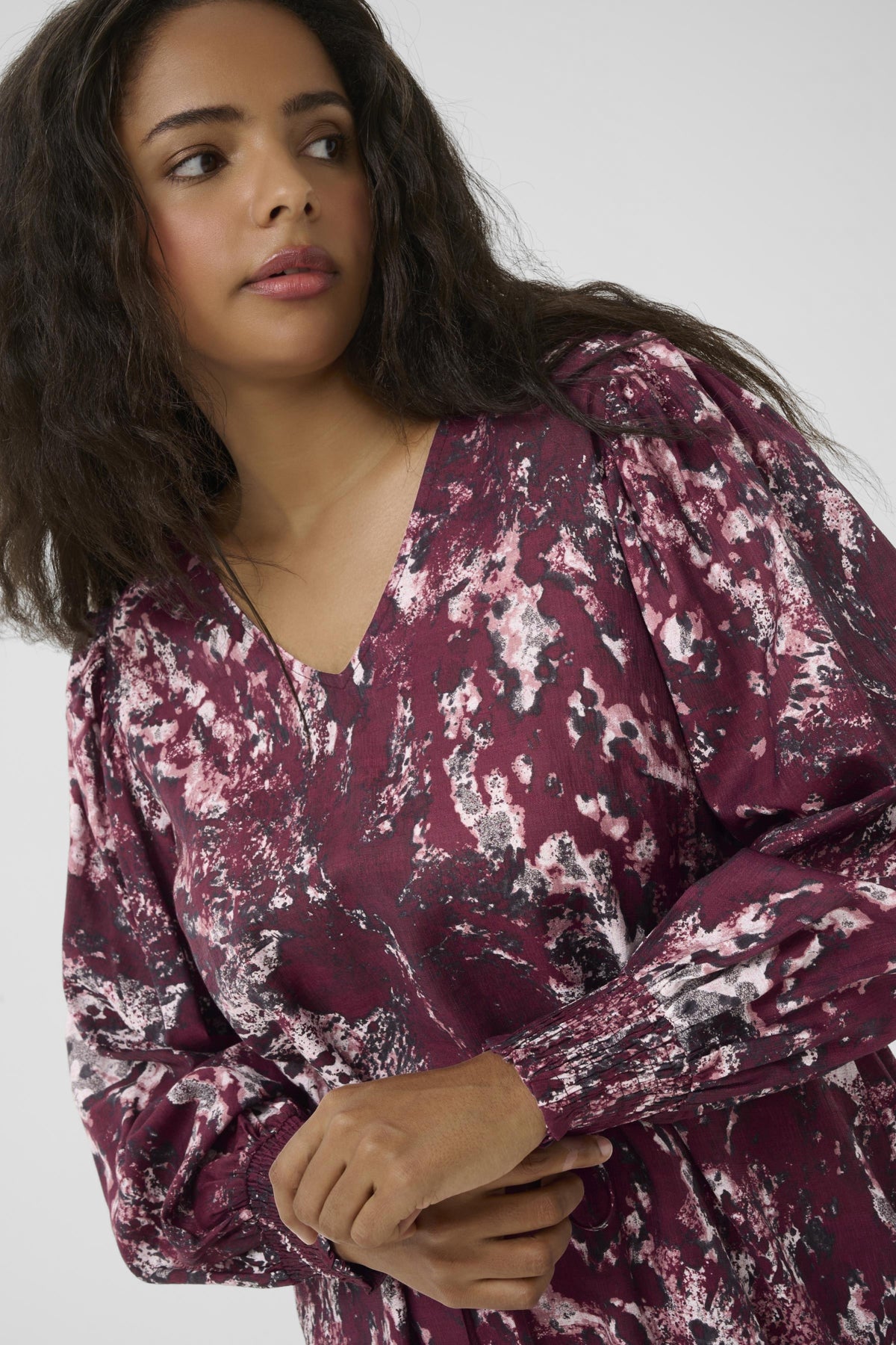 Fallega vínrauð í grunninn með óreglulegu mynstri.