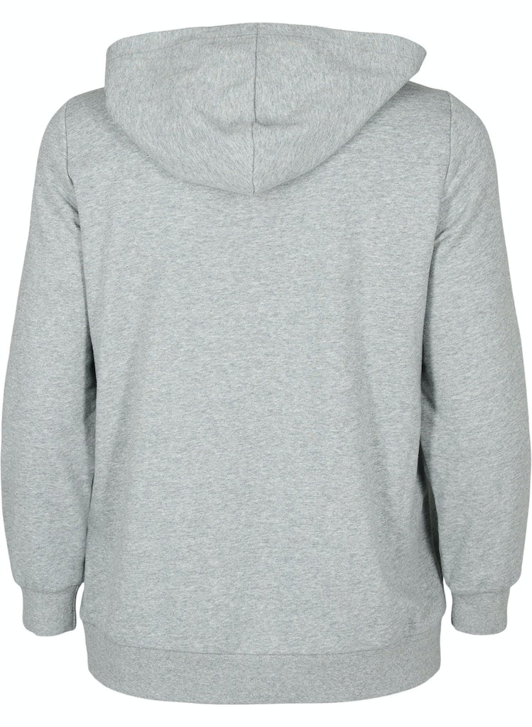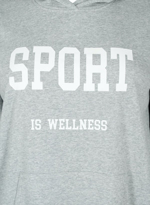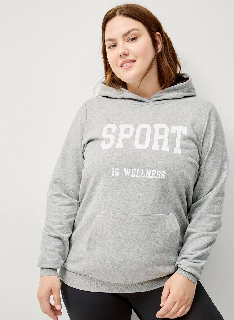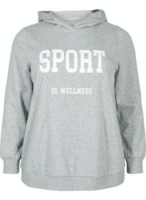 Þægileg grá hettupeysa frá nýju línu Zizzi Active.