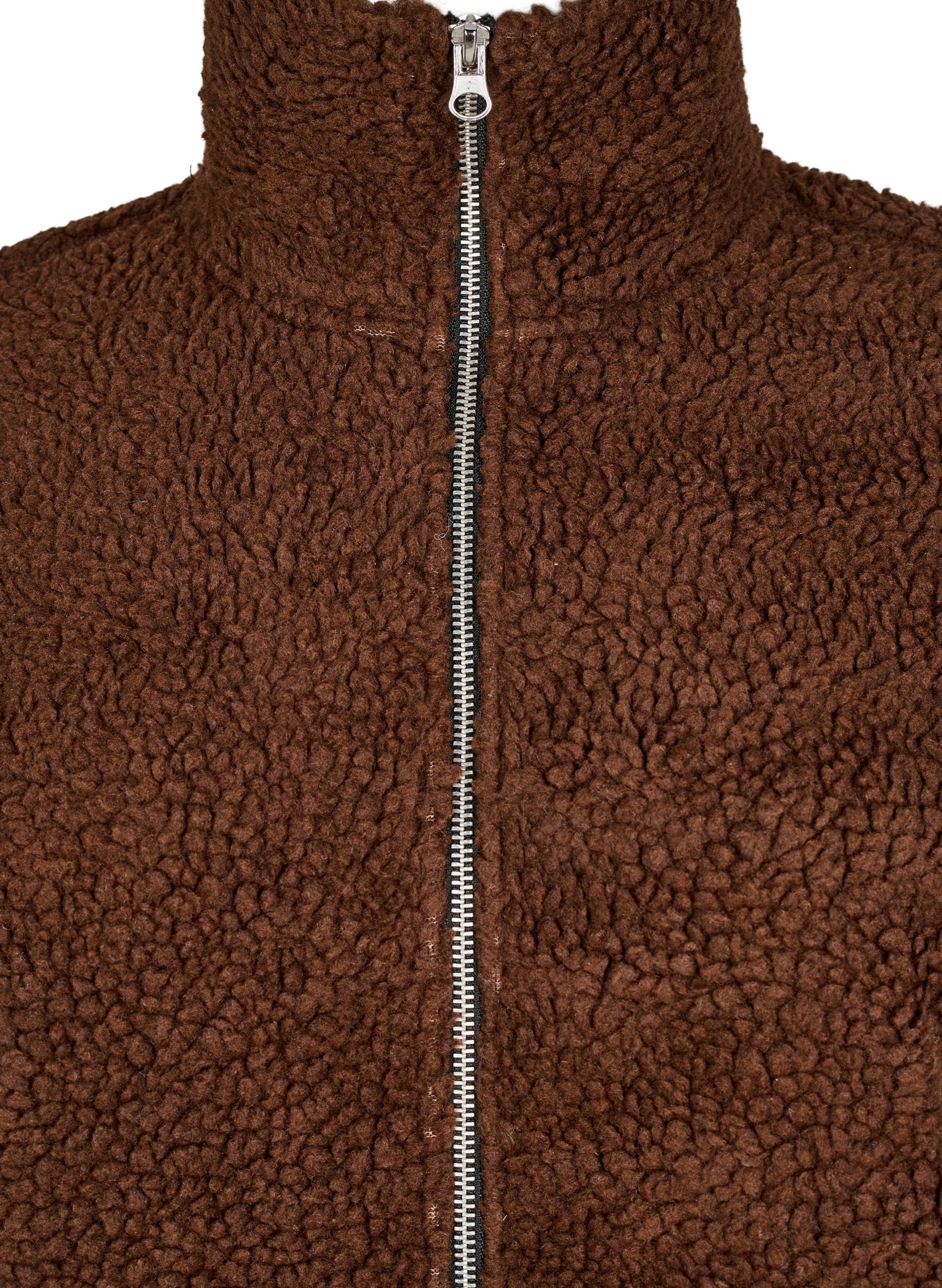 Peysan er úr hlýju og mjúku 'Teddy' efni með vösum á hliðinni.