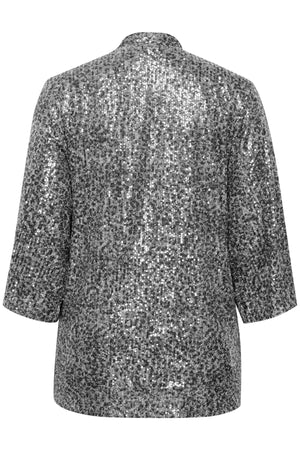 Efnið í jakkanum er 94% polyester og 6% elastine. Mjúkt fóður að innan en þakinn pallíettum að utan.