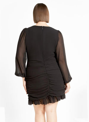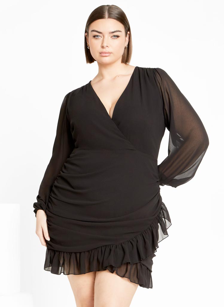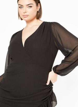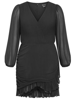 Svartur aðsniðinn og sexy siffon kjóll með lokuðu wrap sniði.