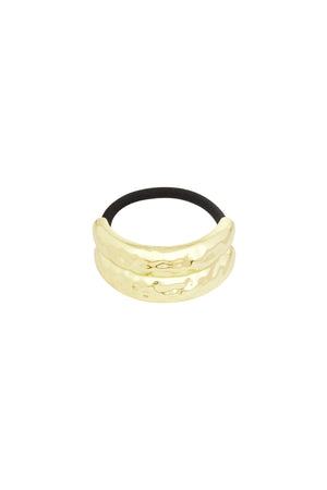 Sterk og góð hárteygja með gylltu stálskrauti sem kemur ótrúlega vel út þegar hárið er sett í tagl.