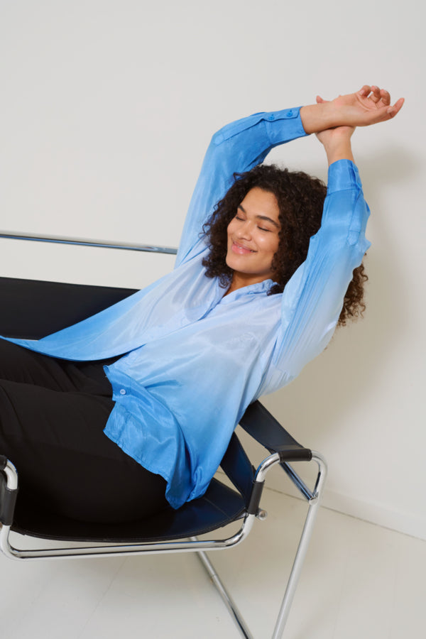 Áferðin á skyrtunni er fínleg og silkikennd en skyrtan er úr 100% náttúrulegt efni.