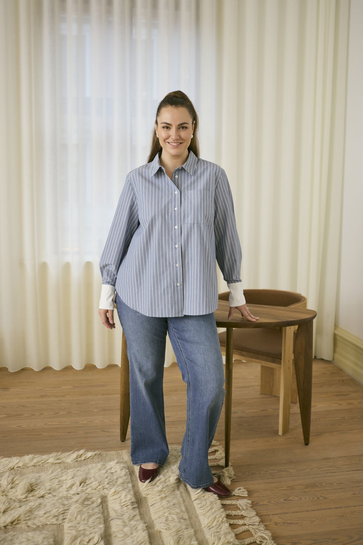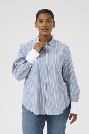 Laus og þægileg blá og hvít röndótt skyrta frá danska merkinu Kaffe Curve.