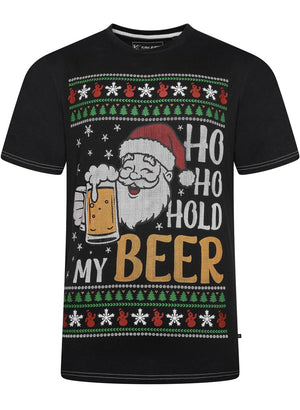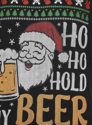 Bolurinn er svartur í grunninn með áprentaðri mynd af jólasvein sem er komin með einn ískaldann!