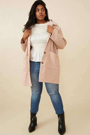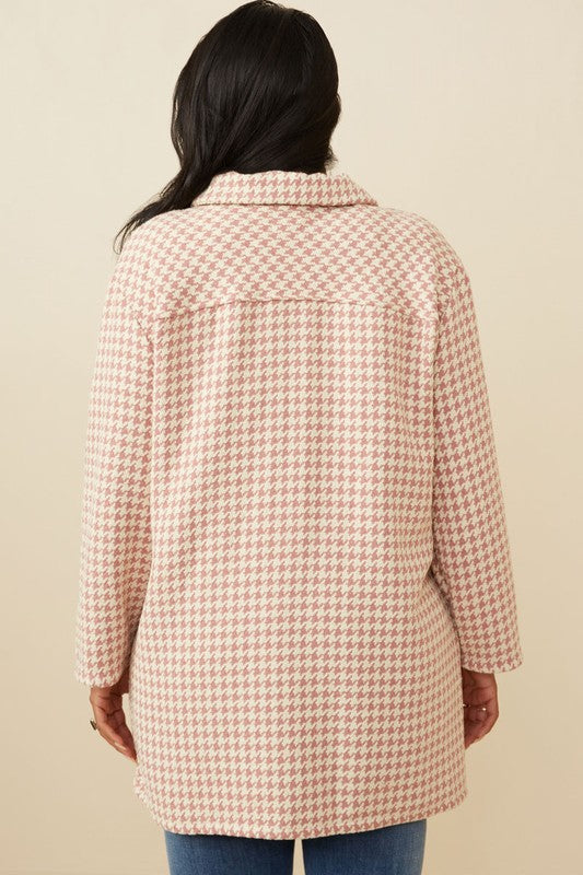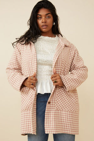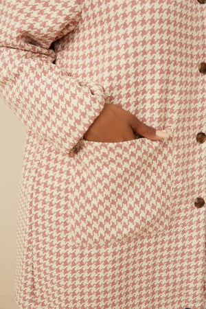 Fallegur ljósbleikur hnepptur jakki eða kápa með Houndstooth mynstri.
