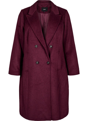 Klassísk víðnrauð hneppt kápa frá danska merkinu Zizzi.