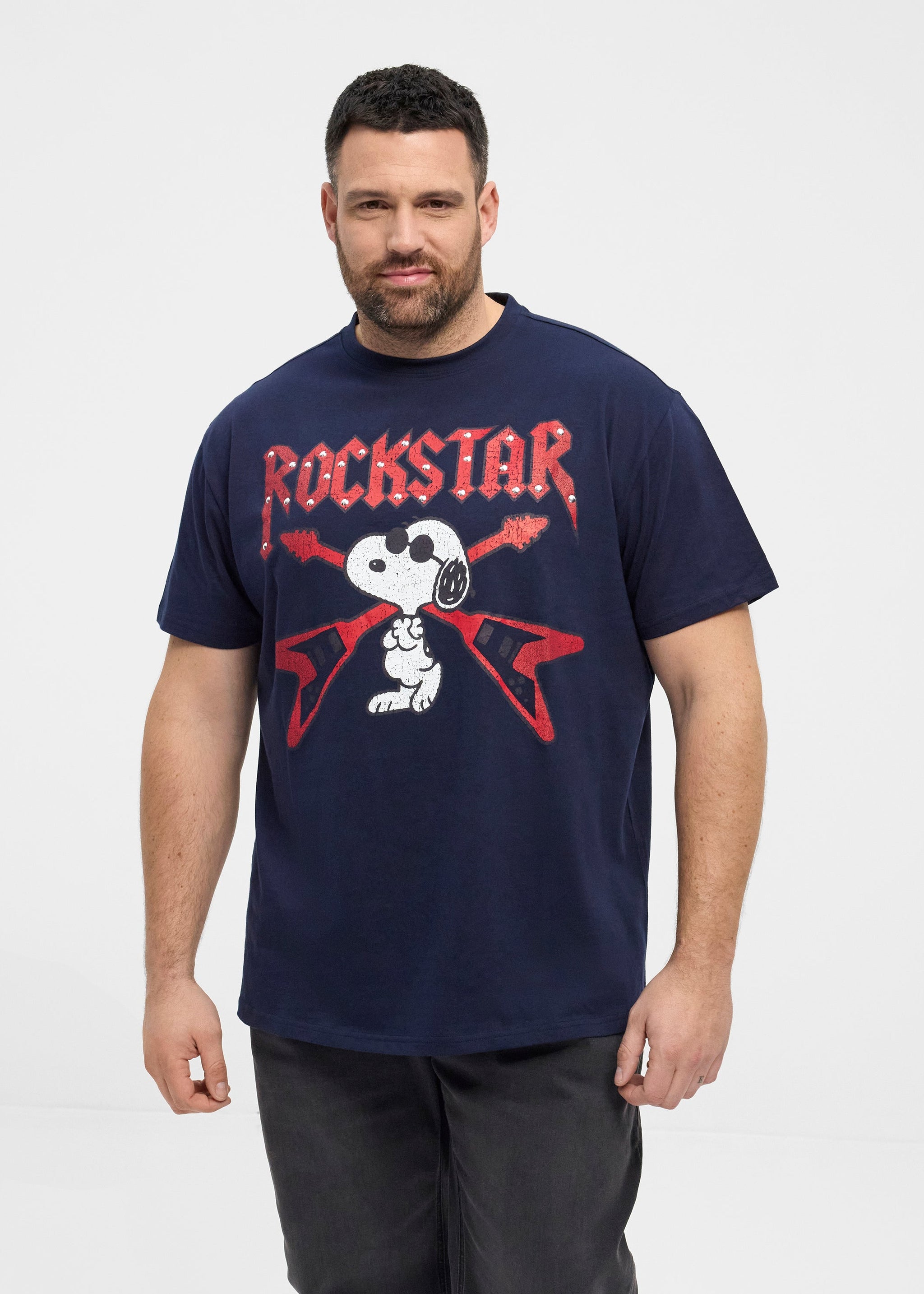 "Official Snoopy" stuttermabolur með hvíta snoopy rokk hundinum að framan.