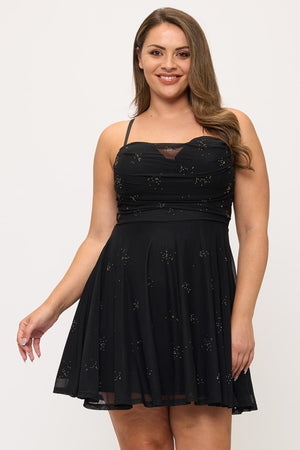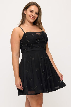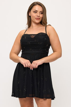 Flottur svartur mesh kjóll stillanlegum grönnum hlýrum.