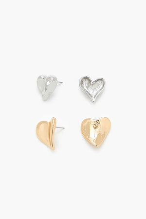 Sett af tveimur nettum hjarta eyrnalokkum - bæði gyllt og silfruð.