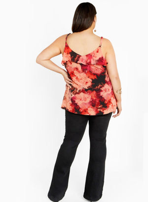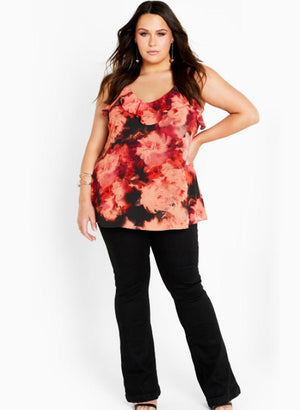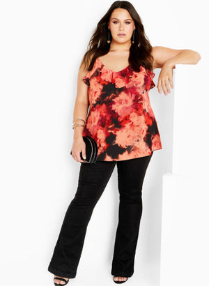 Toppurinner með stillanlegum hlýrum , v-hálsmáli og sætri pífu við hálsmálið.