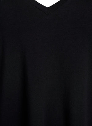 Sniðið er laust og frjálslegt með smá klauf á hliðunum.