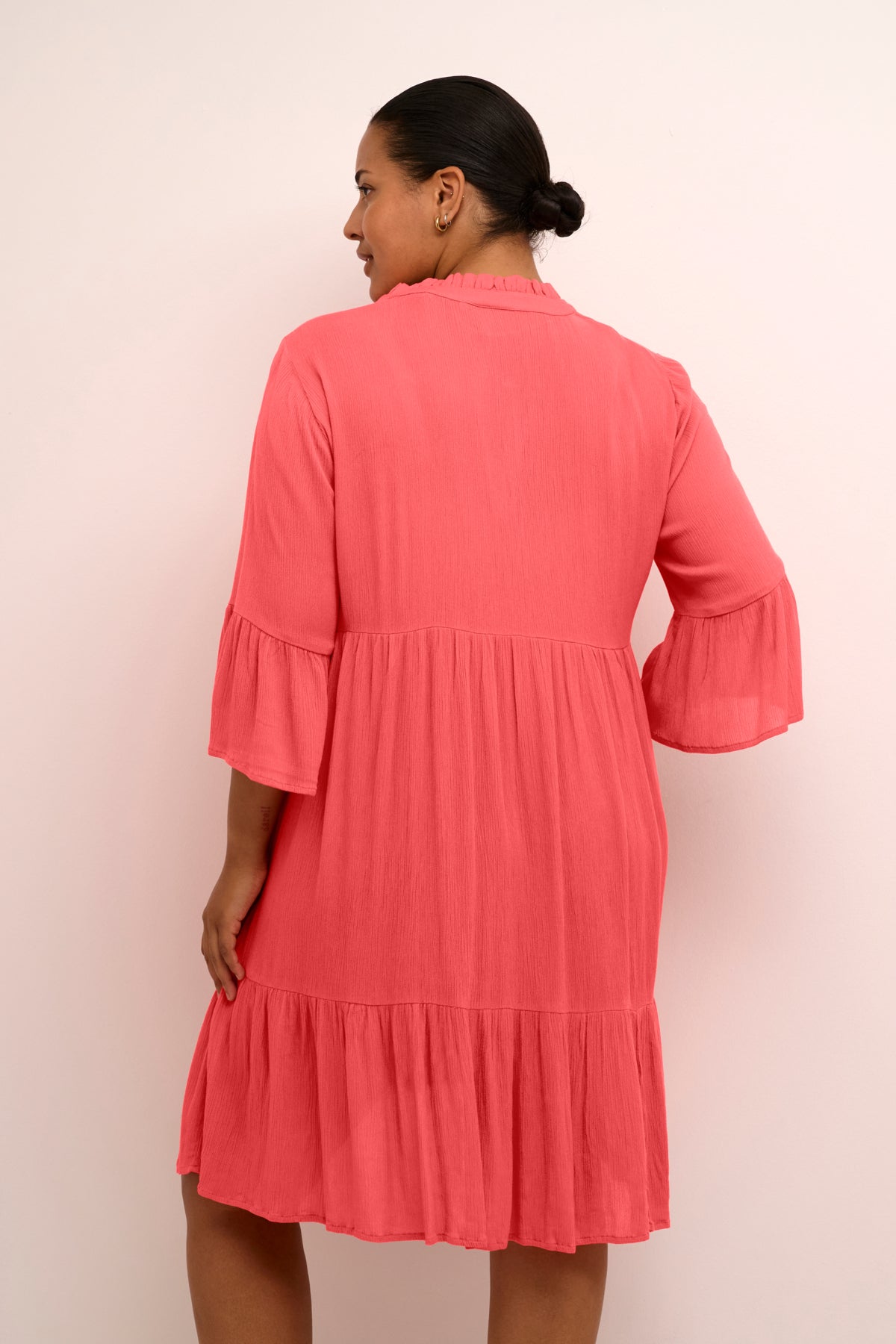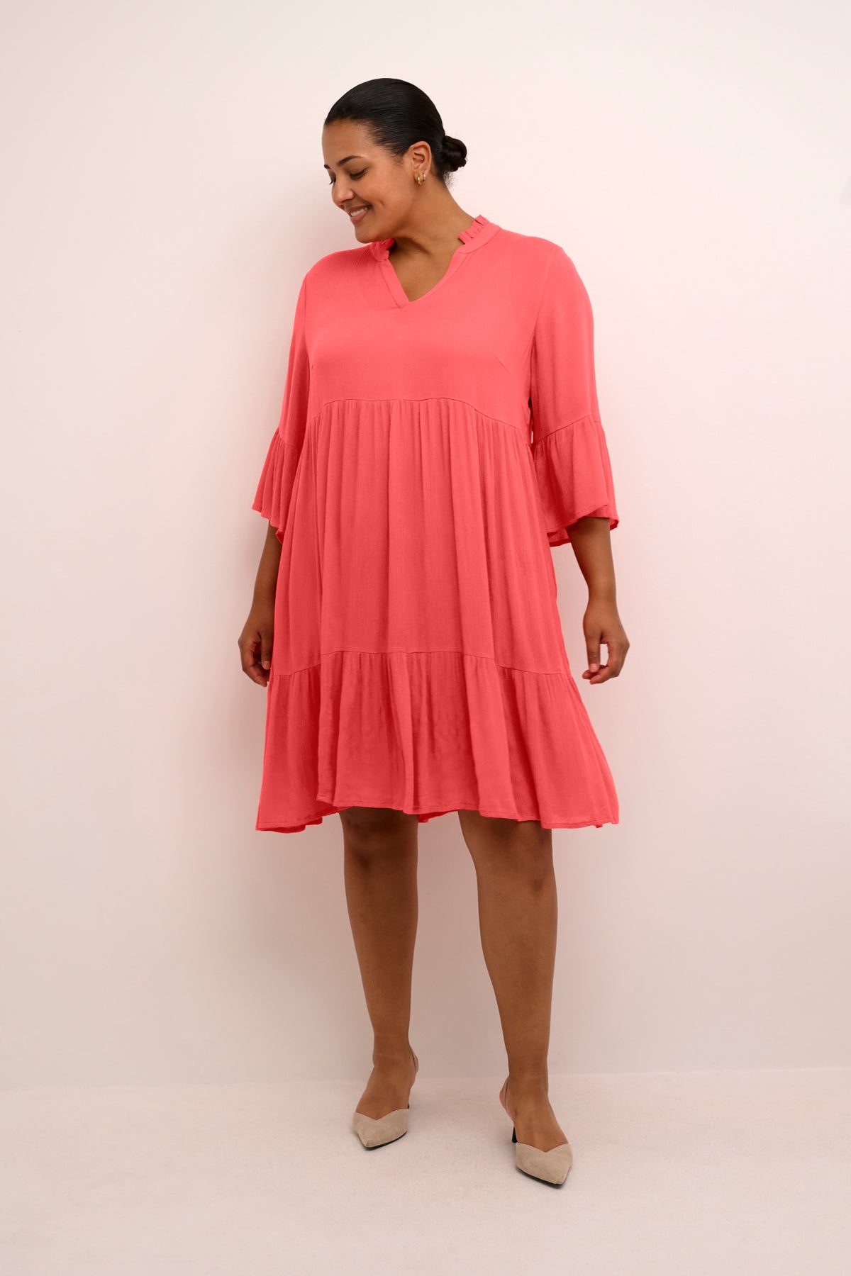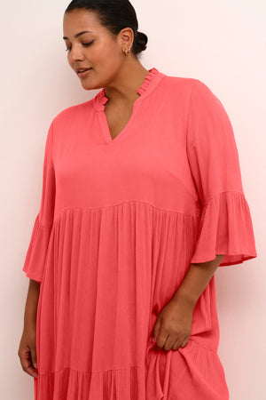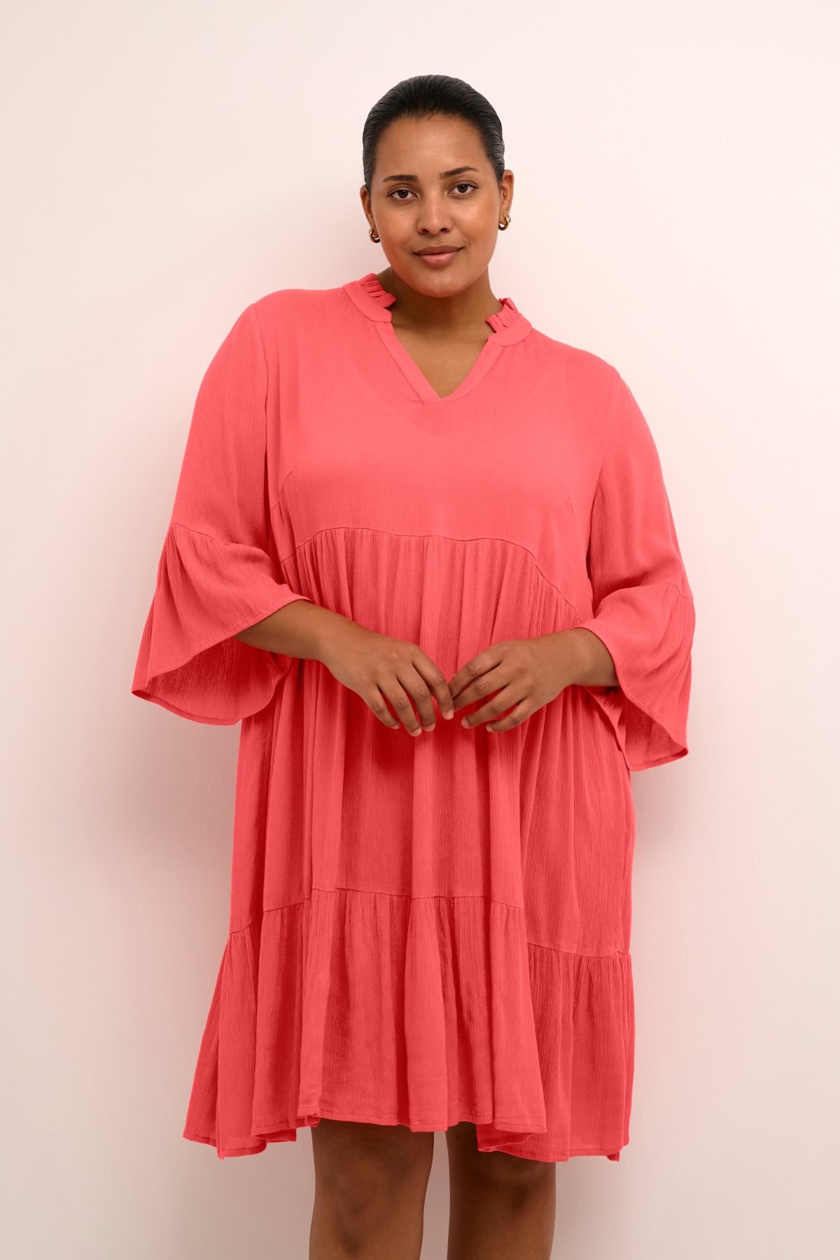 Fallega Coral bleikur kjóll úr Ami línunni frá Kaffe Curve.