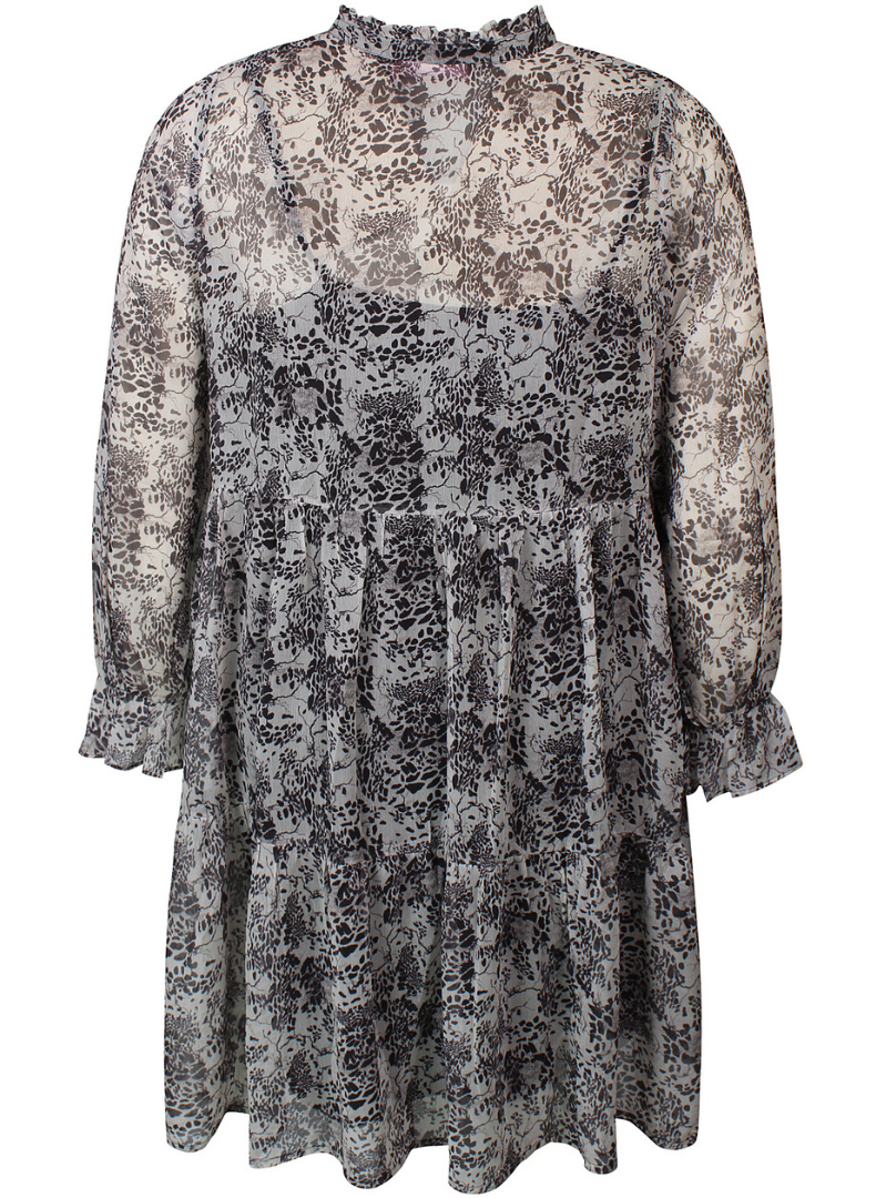 Efnið er tveggjalaga , siffon efni yfir og svo undirkjóll úr teyganlegri viscose blöndu.
