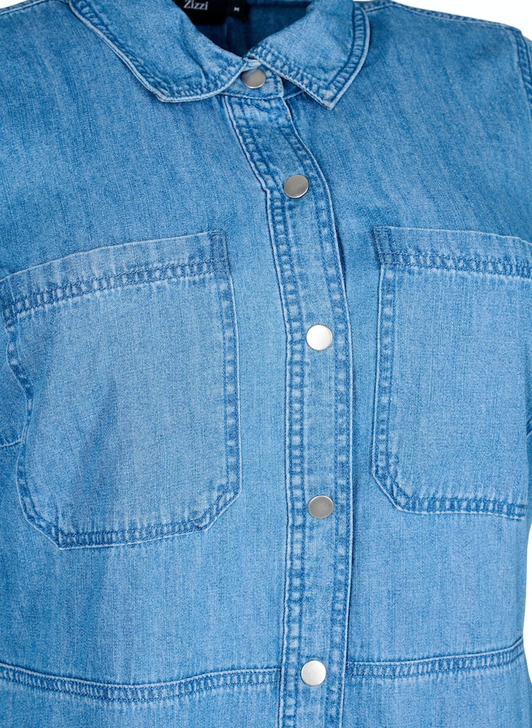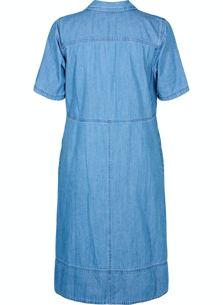 Fullkominn gallaskyrtukjóll frá Zizzi er með klæðilegu A-laga sniði, smelltur alla leið niður, hálfar ermar og með vösum að framan.