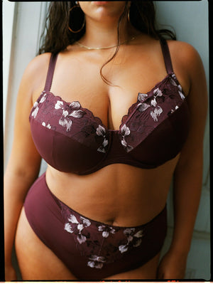 Fallega vínrauðar með fallegri blómablúndu að framan.