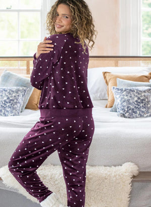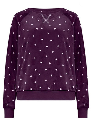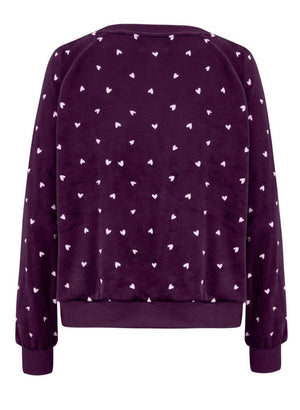 Hlýlegt velúrefni í fallegum plómulit og með litlum hjörtum.
