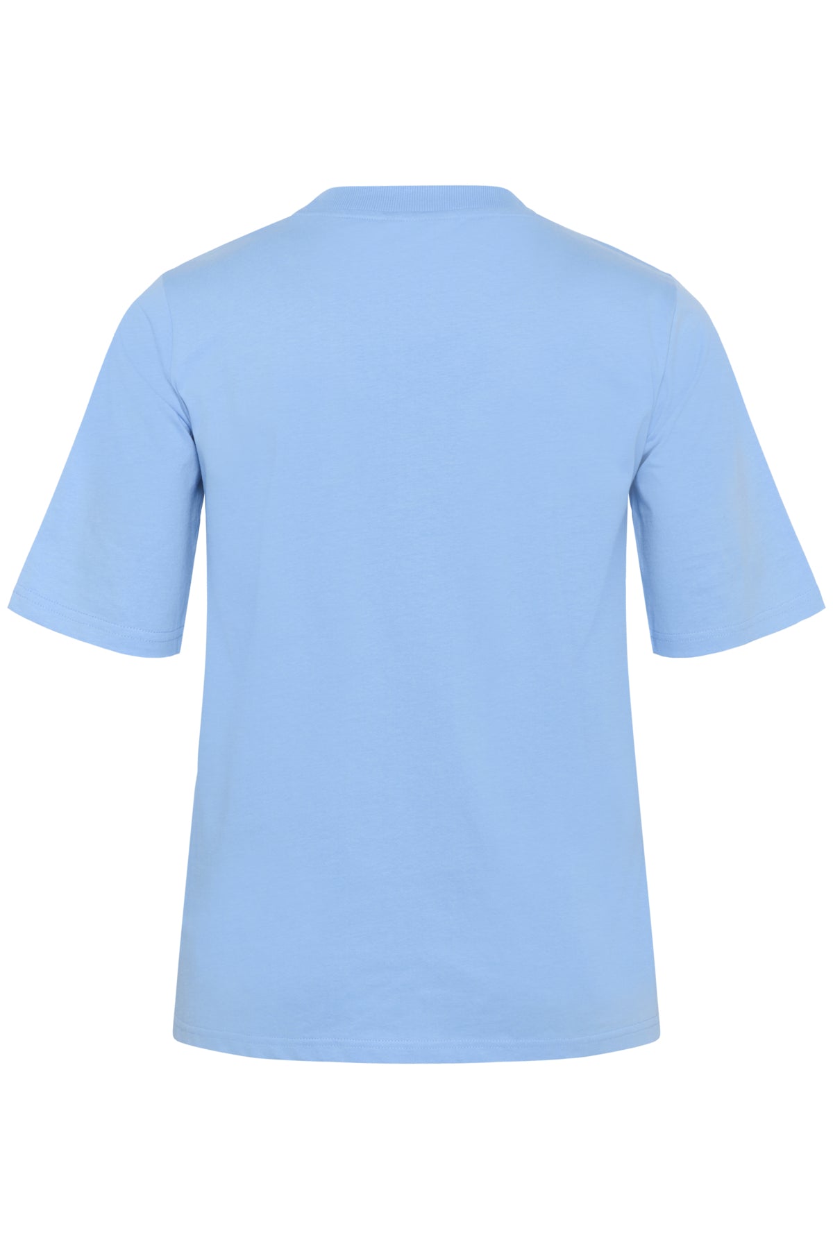Rúnnað hálsmál, stuttar ermar og laust snið.