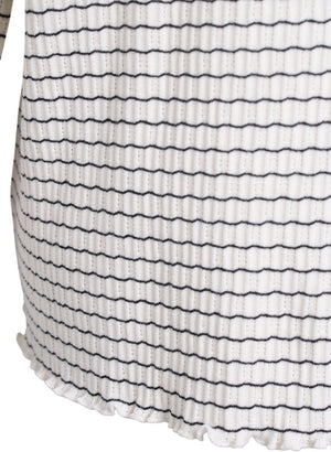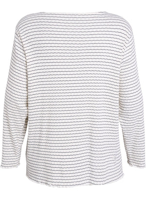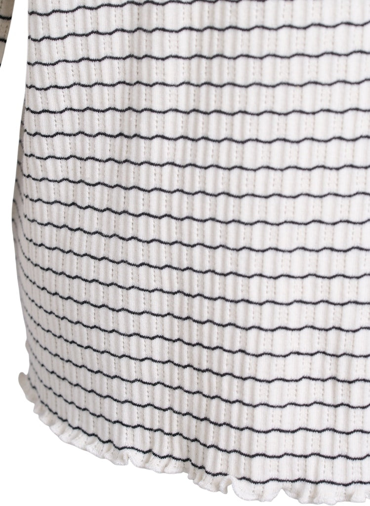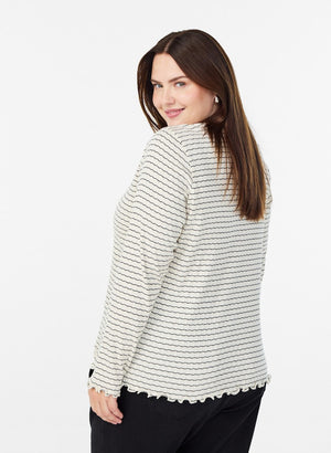 Ljós í grunninn með svörtum línum og fallegri prjónaáferð.