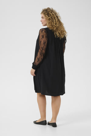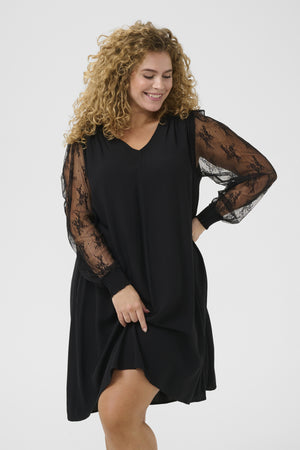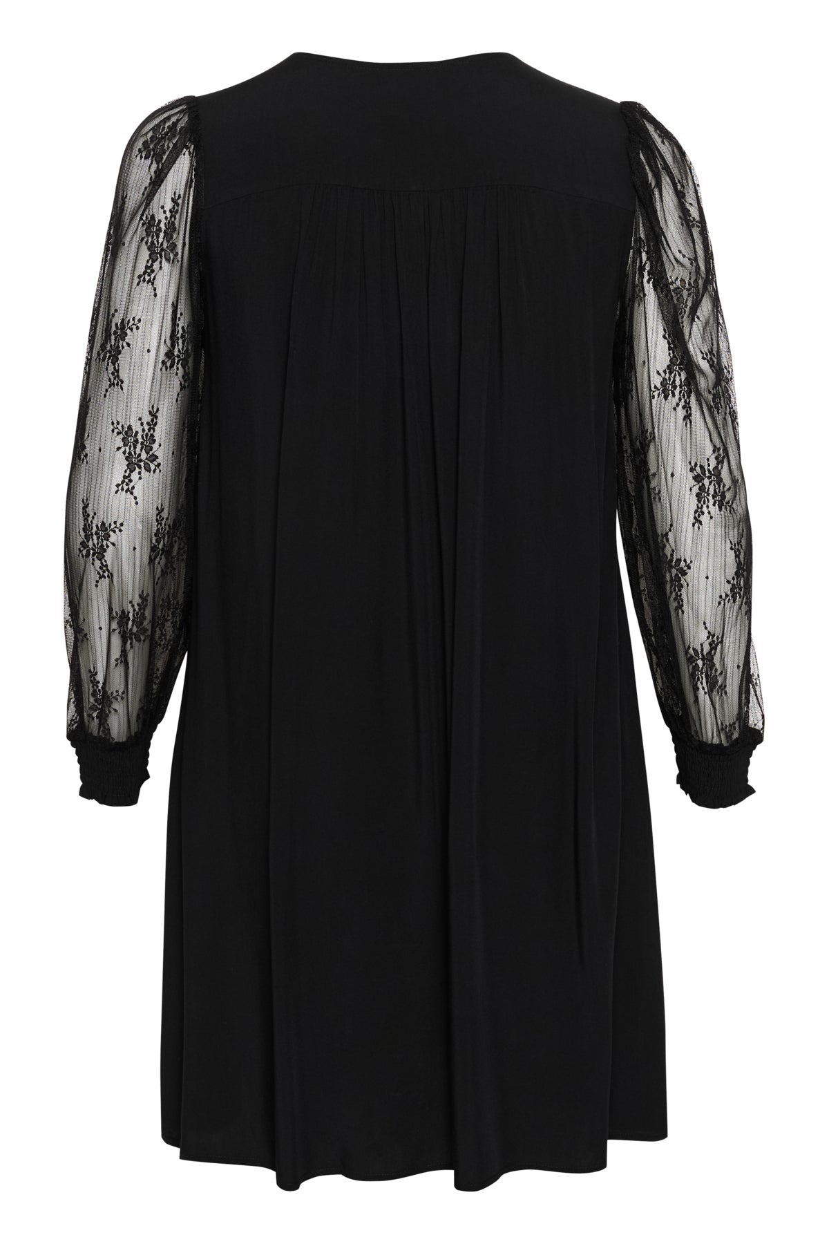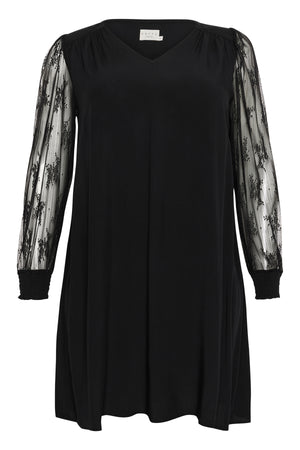 Fínlegt 100% viscose efni er í kjólnum og teygjanleg blúnda á ermunum.