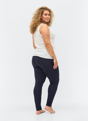 Hér eru yndislegu ZIZZI viscose leggings í fullri lengd eða ná nær rétt niðurfyrir ökkla (skálmalengdin er sirka 71 cm mælt frá klofsaum og niður skálmina).
