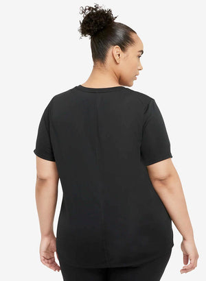 Léttur íþróttabolur með rúnnuðu hálsmáli, lausu sniði og aðeis síðari að aftan. Prentað logo við hálsmál.