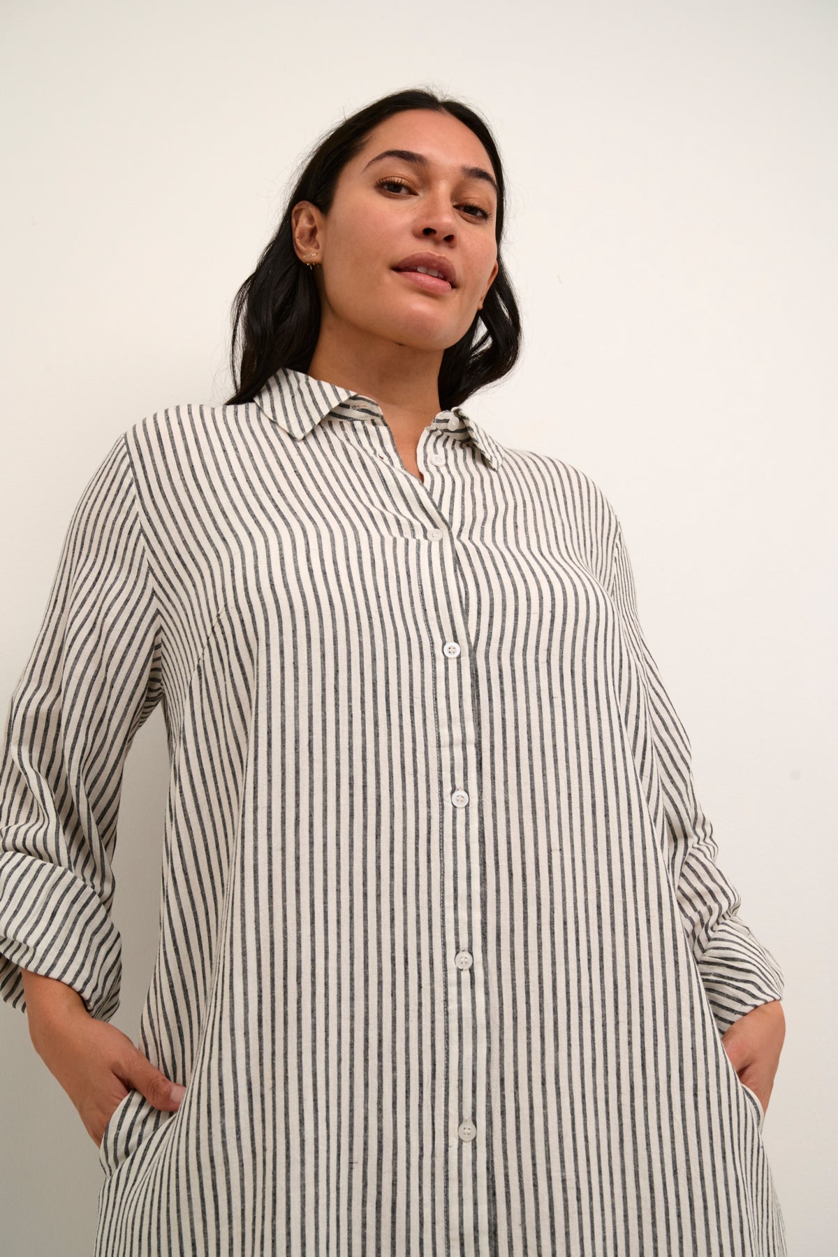 Extra síð skyrta eða skyrtukjóll frá danska lúxus merkinu Kaffe Curve.
