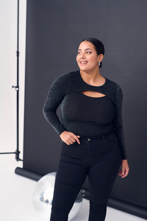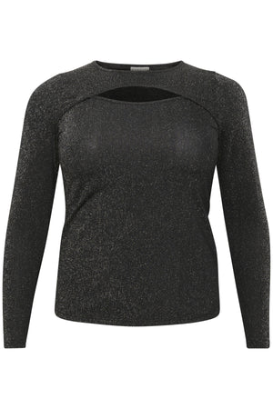 Toppurinn er svartur í grunninn með silfruðum glitrandi þráðum sem gerir toppinn extra sparilegann fyrir jól og áramót.